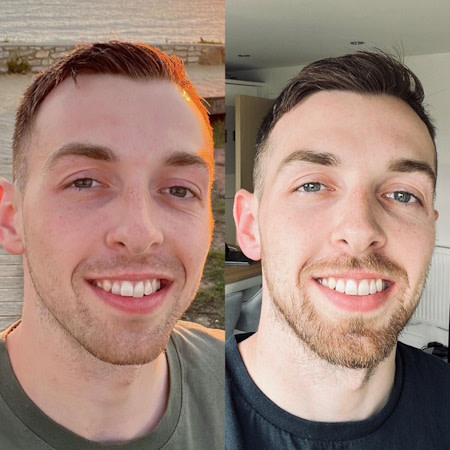 Mach Selfies, lade sie in deine Galerie hoch und verfolge, wie sich dein Lächeln im Laufe der Zeit verwandelt.